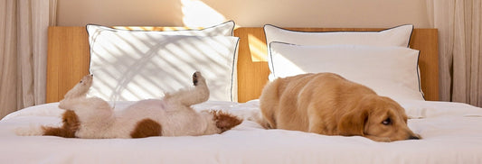 Luxuriously soft duvet cover and pillowcases designed to resist fur. Beautiful, breathable, and built for real pet life.